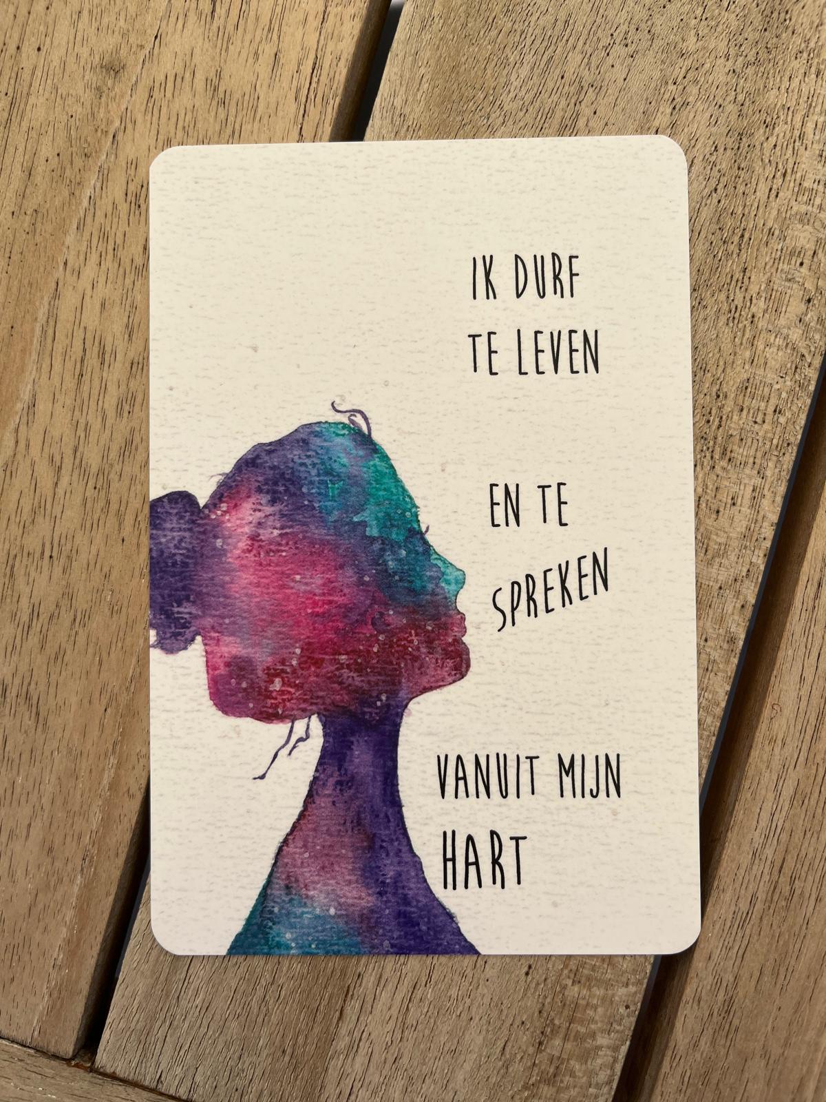 Dankbaar voor dit mooie kaartje. Ontvangen na afloop van een periode dat haar heb mogen ondersteunen en begeleiden. Goed zijn zoals je bent, daar gaat het om. Dat geeft ze met dit kaartje ook aan.